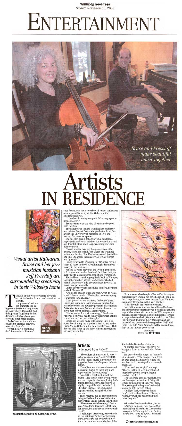 Artists in Residence: Review by Morley Walker Winnipeg Free Press - Nov. 2003